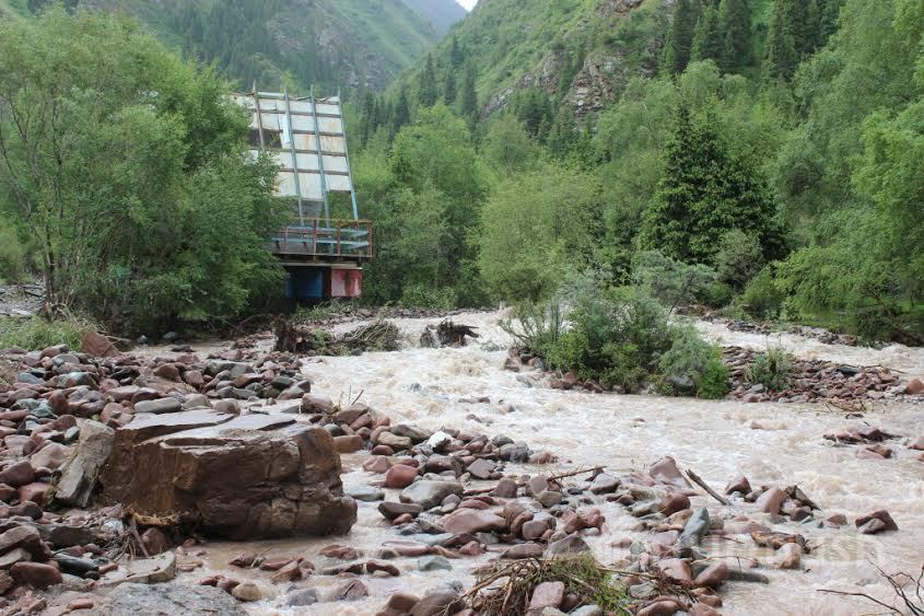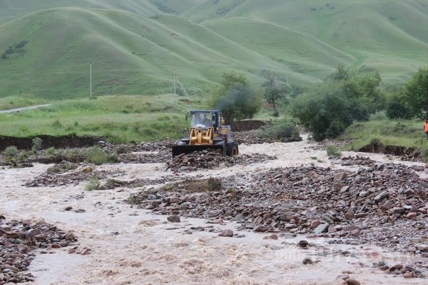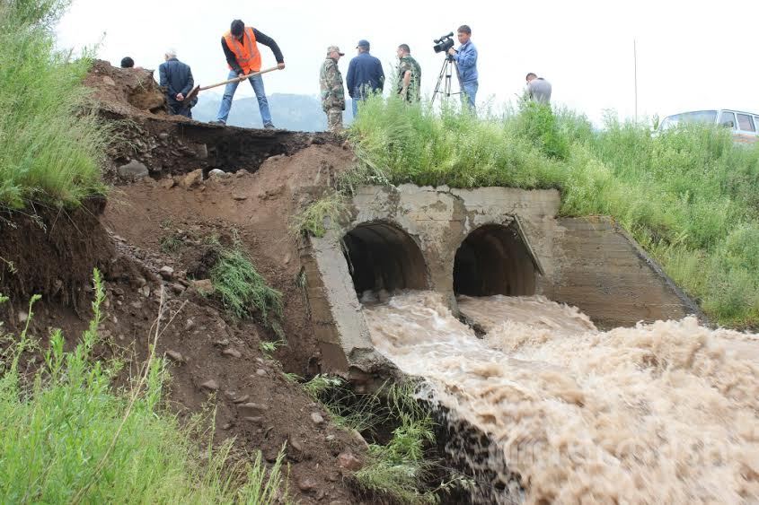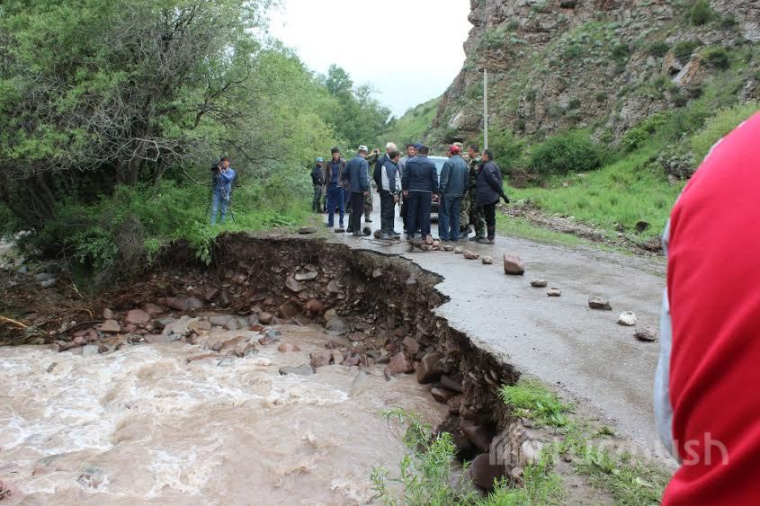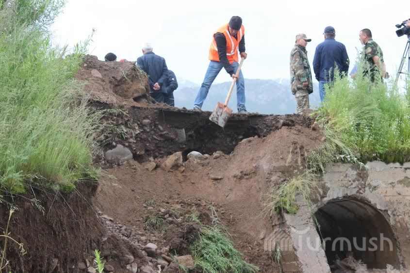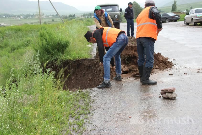 Фото - Дөбөлүдөгү суу жолдорду каптап, көпүрөнү кулатты