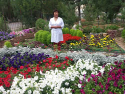 : Г.Рахматова гүлдөрдүн жардамы менен оорукананын короосуна медайымдын символун түшүрдү