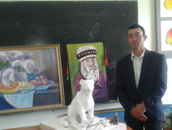 : Ак илбирсти сактап калууга чакырган нарындык Адилет анын айкелин чоподон жасады