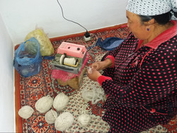: Ж.Телтаева 10 жыл мурун сатып алган машинкасы менен жүн ийрип, кол өнөрчүлүк кылат