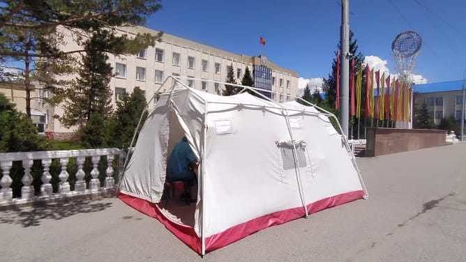 Фото – Палатка на центральной площади Нарына для вакцинации от COVID-19