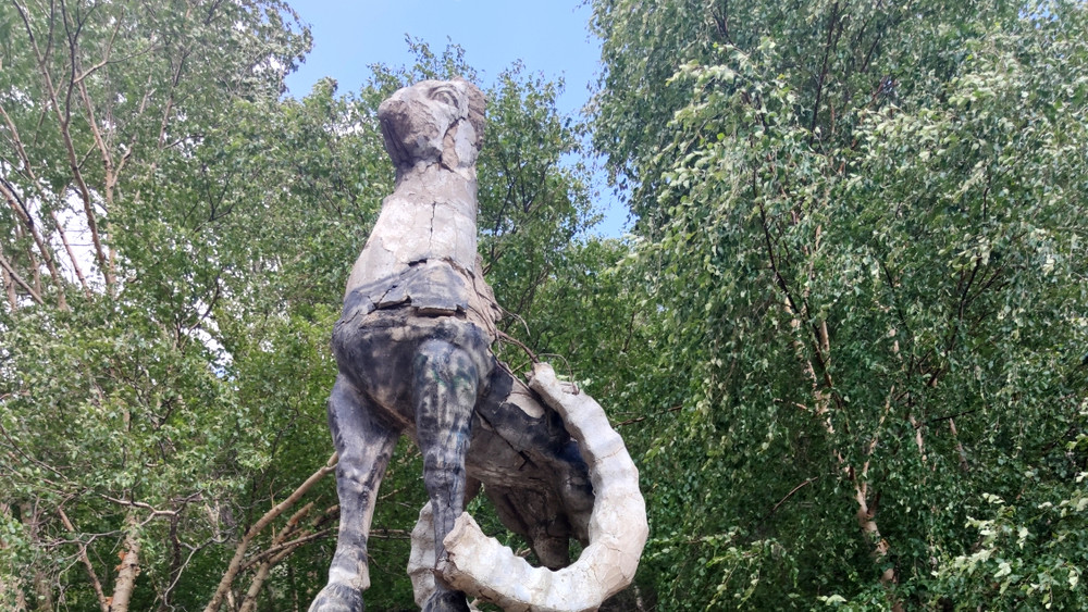Фото — Разрушенная, исписанная статуя архара в Жумгале