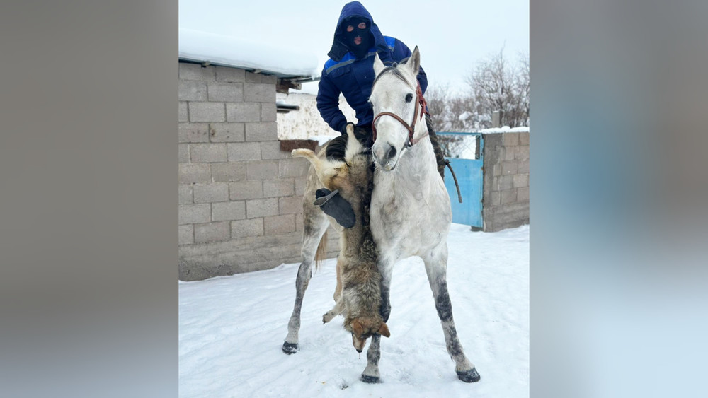 В Суусамыре парни верхом на лошади полтора часа гнали волка. Настигнув, нанесли удар лопатой