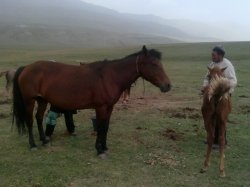 Житель Ак-Талинского района М. Шаршенов на жайлоо Сон-Куль занимается скотоводством и принимает туристов
